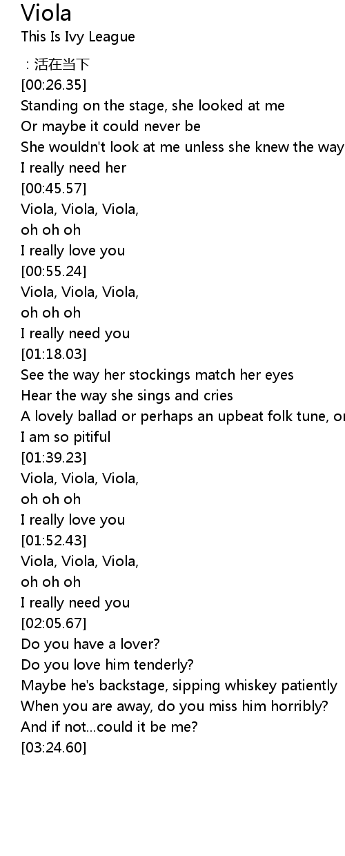 | [00:33.67] | She wouldn' t look at me unless she knew the way that I need her |