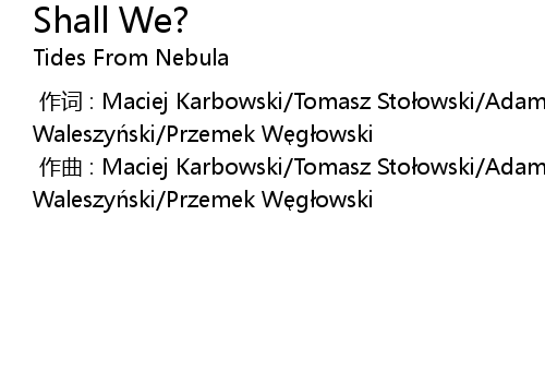 | [00:00.000] | 作曲 : Maciej Karbowski/Tomasz Stołowski/Adam Waleszyński/Przemek Węgłowski |