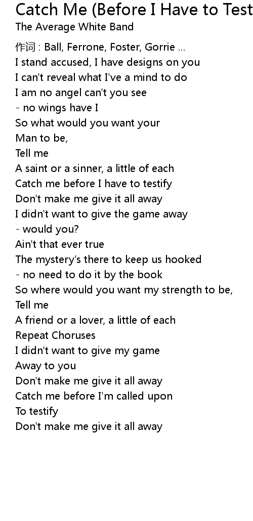 | Song | Catch Me (Before I Have to Testify) |