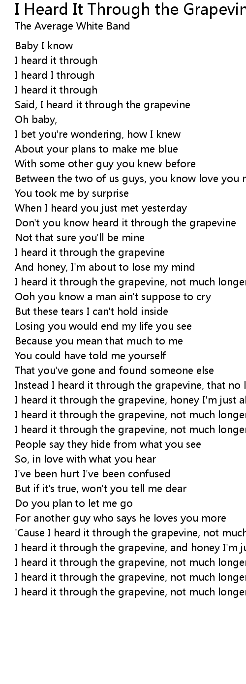 I heard it through the grapevine, and honey I'm just about to lose my mind |
