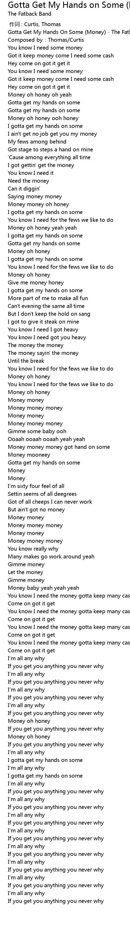| [00:00.00] | Gotta Get My Hands On Some (Money) - The Fatback Band |