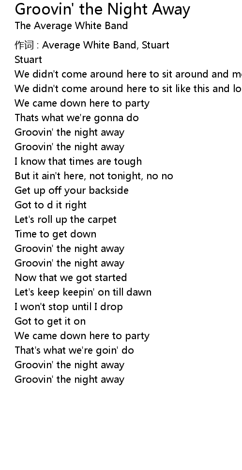| Song | Groovin' the Night Away |