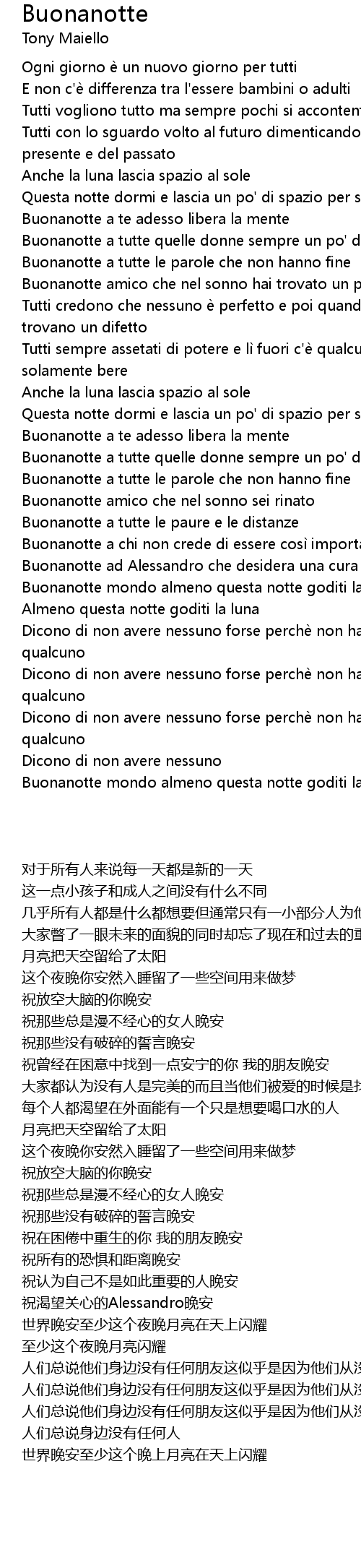 | [01:14.92] | Buonanotte a tutte le parole che non hanno fine |