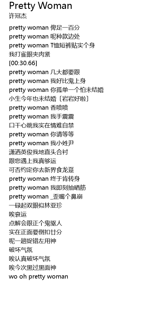 | [00:18.45] | pretty woman 呢种款边处 |