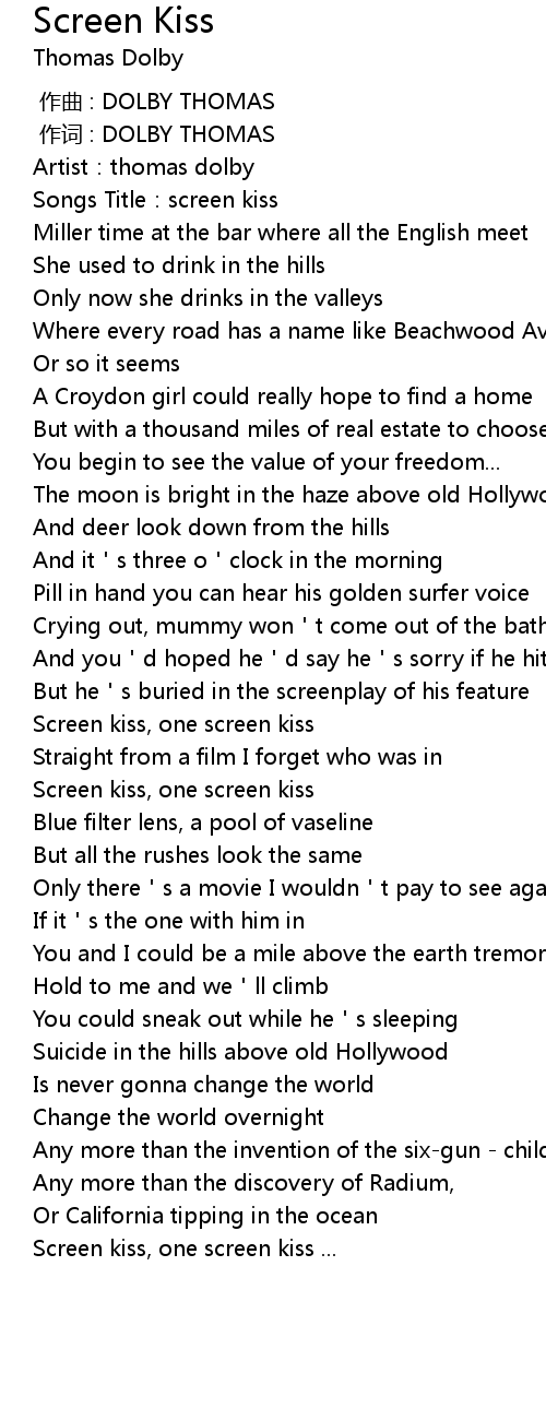 | [00:04.37] | Songs Title: screen kiss |