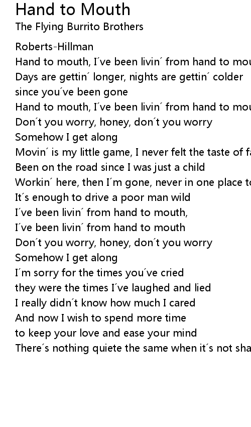 | Hand to mouth, I ve been livin from hand to mouth | |