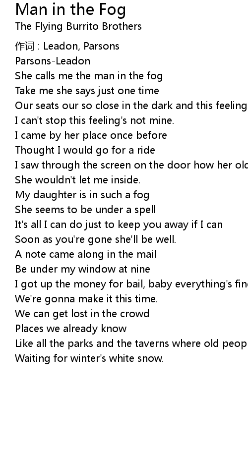| She calls me the man in the fog | |