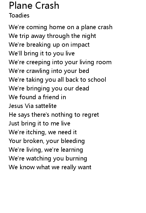 | We're coming home on a plane crash | |