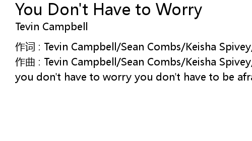 | 作词 : Tevin Campbell/Sean Combs/Keisha Spivey/Pam Long/Kim Raynor | |