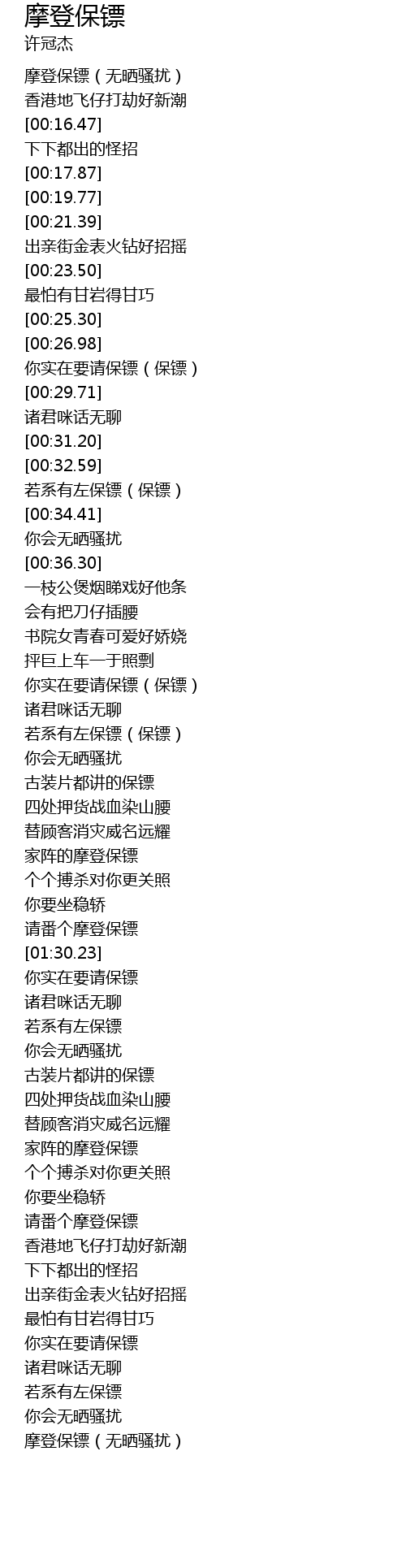 | [01:25.86] | 请番个摩登保镖 |