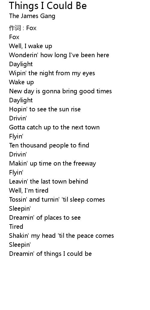| Song | Things I Could Be |