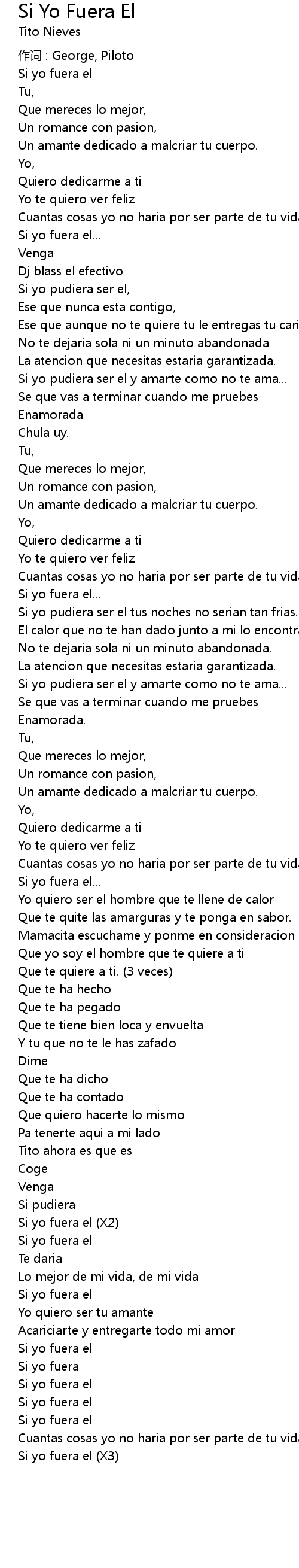 | Si yo pudiera ser el y amarte como no te ama... | |