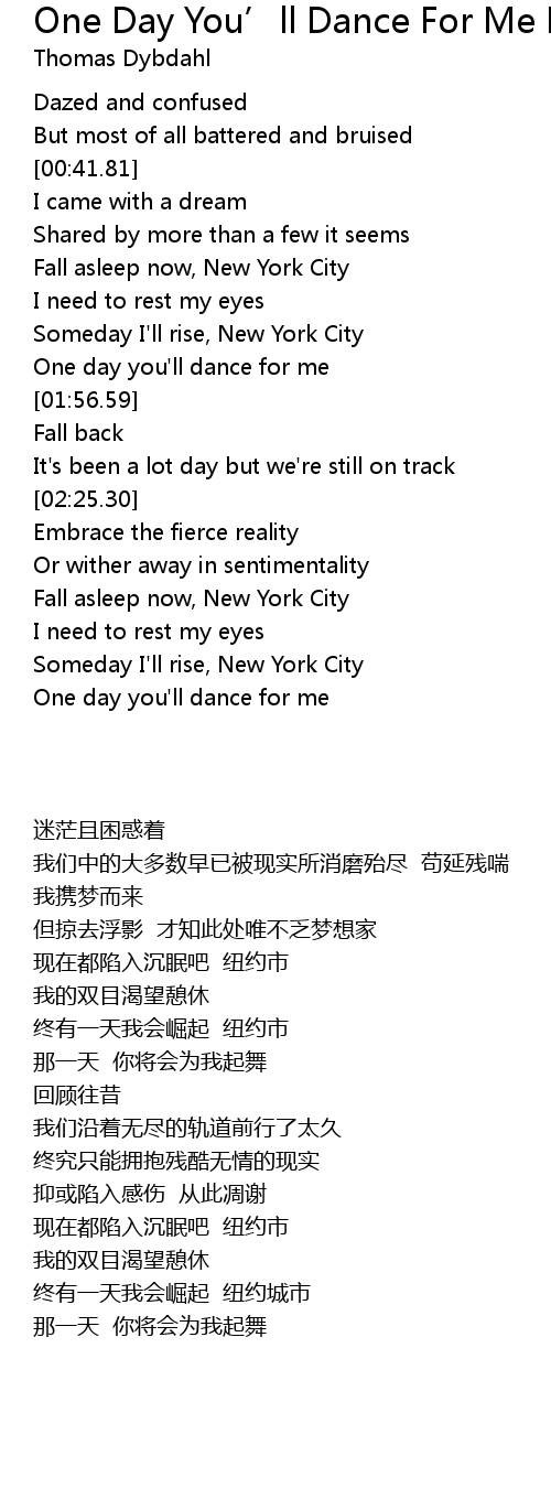 One Day You’ll Dance For Me New York City One Day You' ll Dance For Me New York City Lyrics