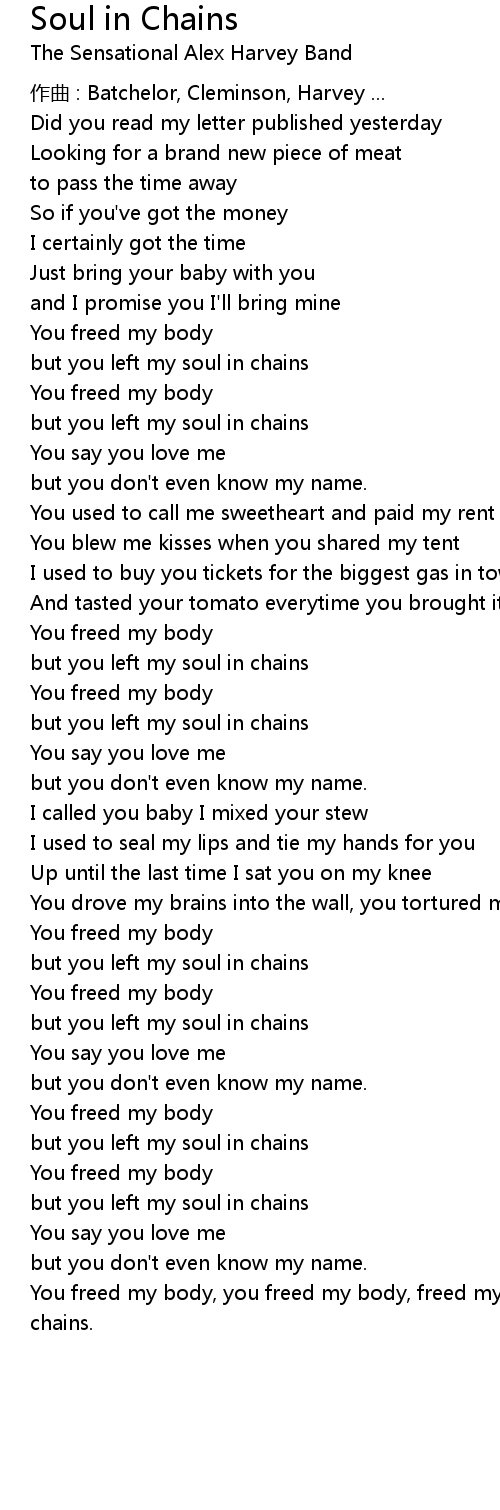| You freed my body, you freed my body, freed my body but you left my soul in chains. |