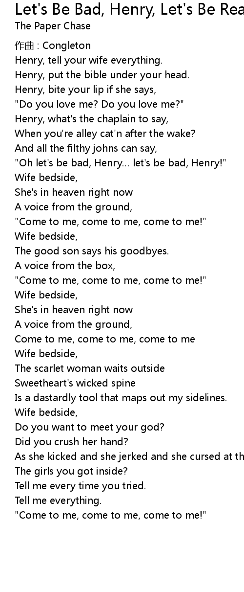 | " Oh let' s be bad, Henry let' s be bad, Henry!" | |