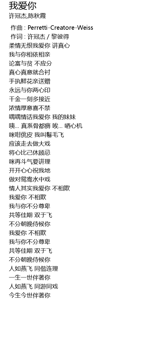 | [01:35.37] | 情人其实我爱你 不相欺 |