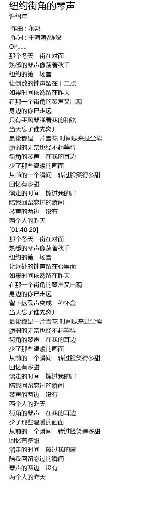 | [02:38.14] | 街角的琴声 在我的耳边 |