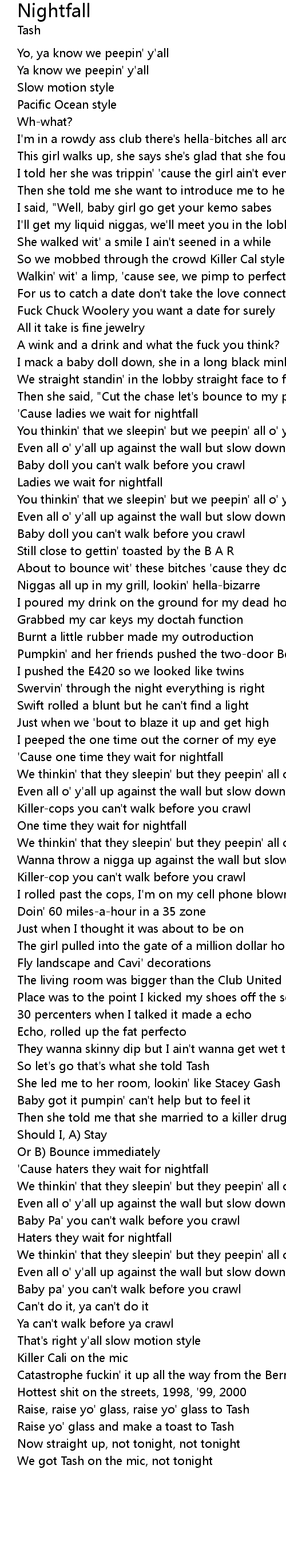 | We thinkin' that they sleepin' but they peepin' all o' y'all | |
