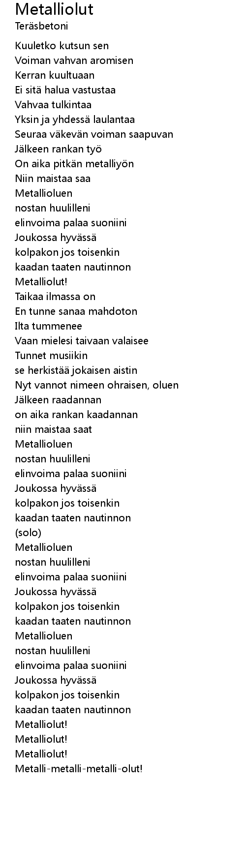 | Metalli-metalli-metalli-olut! |