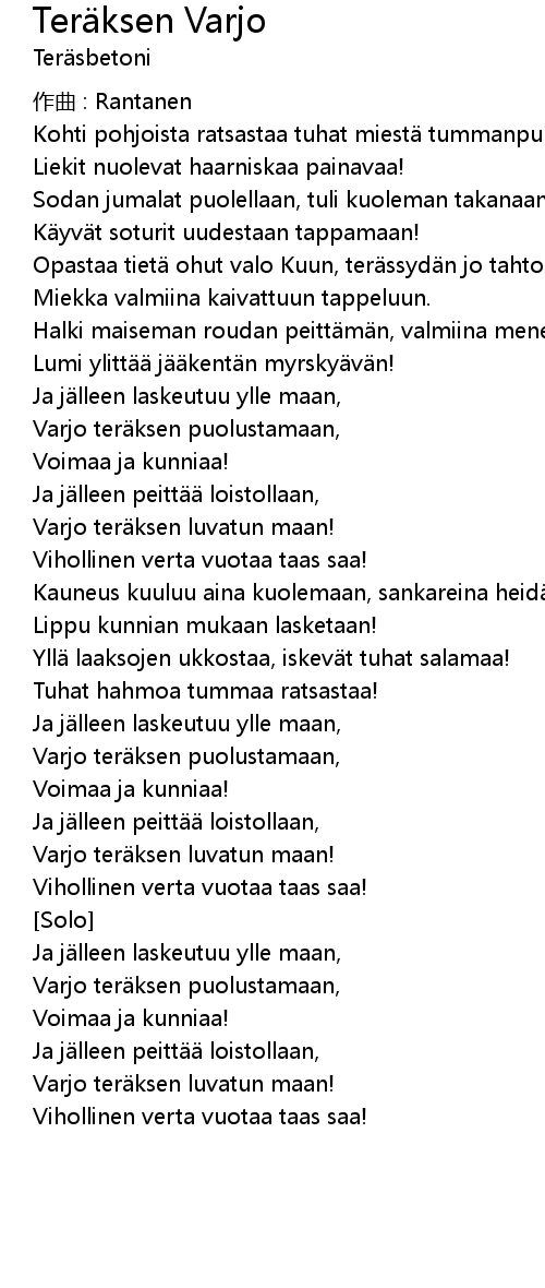 | Opastaa tiet ohut valo Kuun, ter ssyd n jo tahtoo taisteluun, | |
