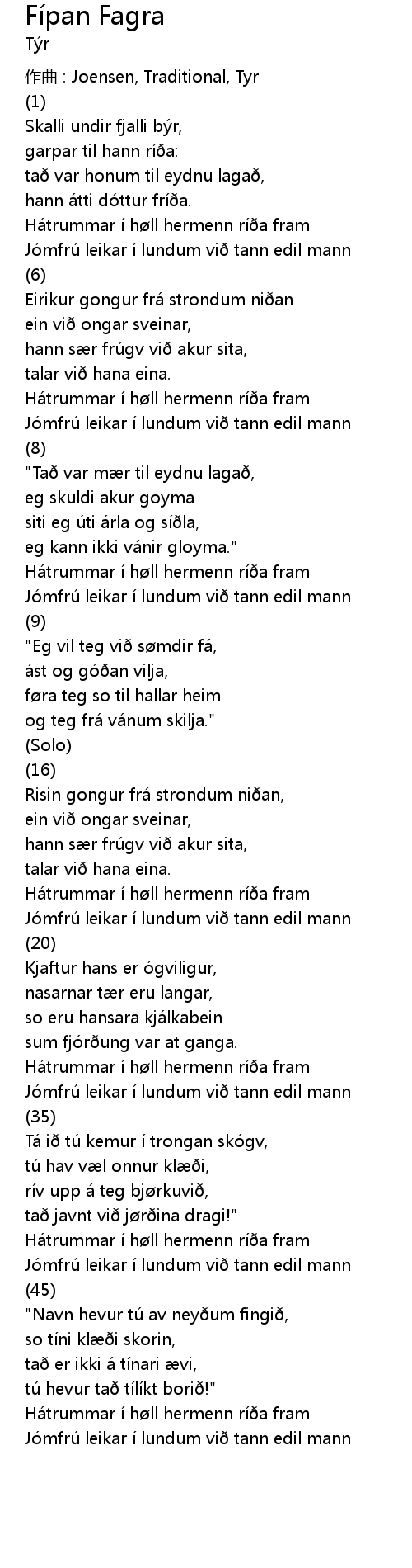 | zuò qǔ : Joensen, Traditional, Tyr | |