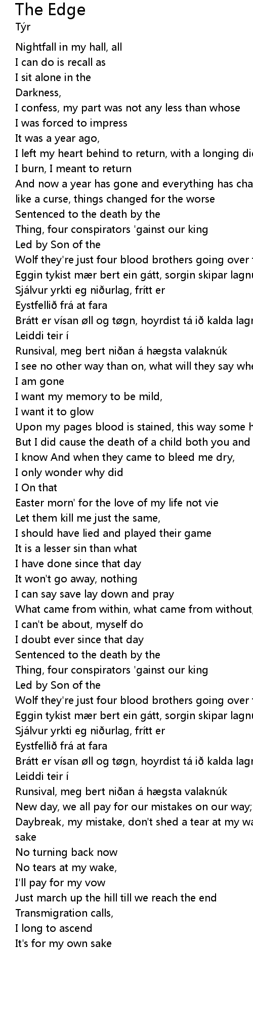 | Brátt er vísan øll og tøgn, hoyrdist tá ið kalda lagnan | |