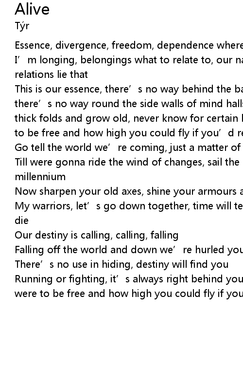 | Running or fighting, it' s always right behind you how things would be if you were to be free and how high you could fly if you' d really try |