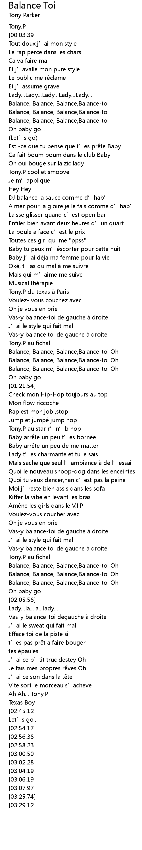 | [03:10.22][02:54.17] | Vasy balancetoi de gauche a droite |