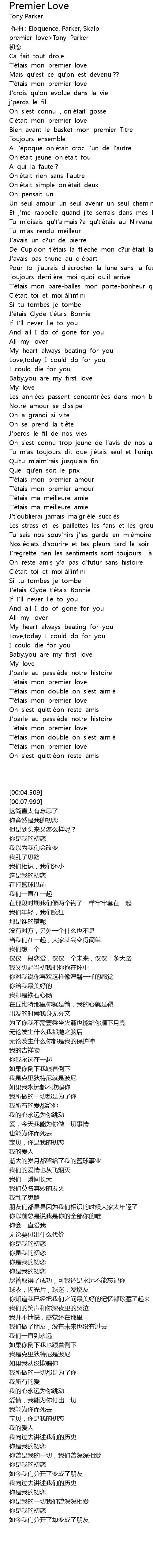| [00:04.509] | premier love Tony Parker |