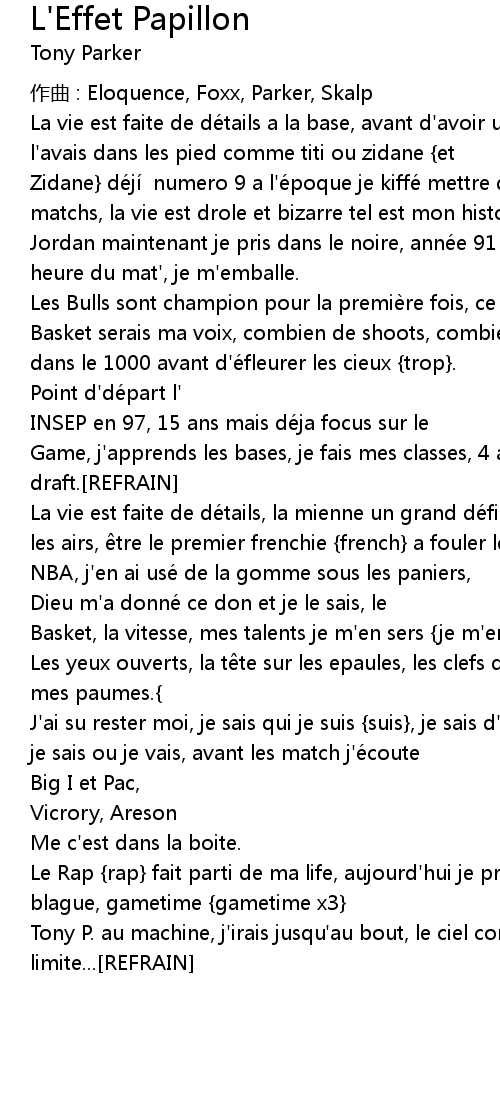 | La vie est faite de détails, la mienne un grand défi, j'voulais planer dans les airs, être le premier frenchie {french} a fouler les terrains de | |
