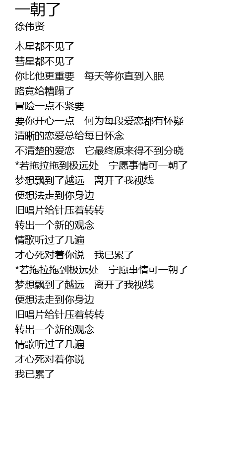 | [00:53.87] | *若拖拉拖到极远处 宁愿事情可一朝了 |