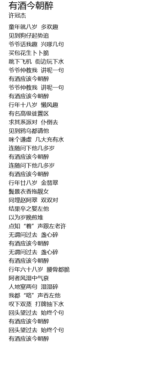 | [00:40.600] | yǒu jiǔ yīng gāi jīn zhāo zuì |