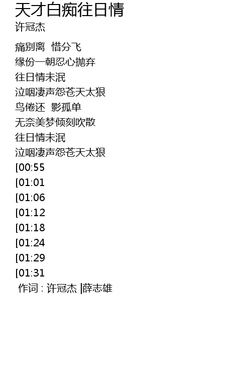 | [00:00.00] | 作词 : 许冠杰 |薛志雄 |