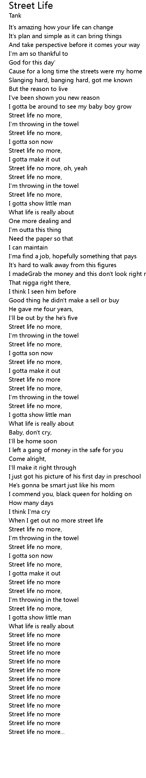 Street life no more, |