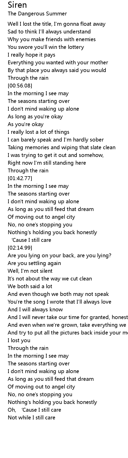 | [00:23.12] | Well I lost the title, I'm gonna float away |
