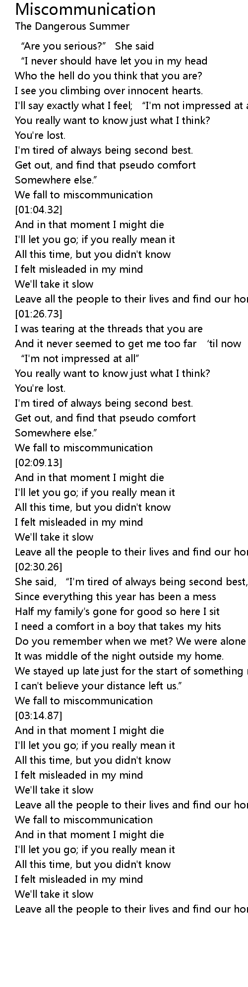 | [01:01.01] | We fall to miscommunication |