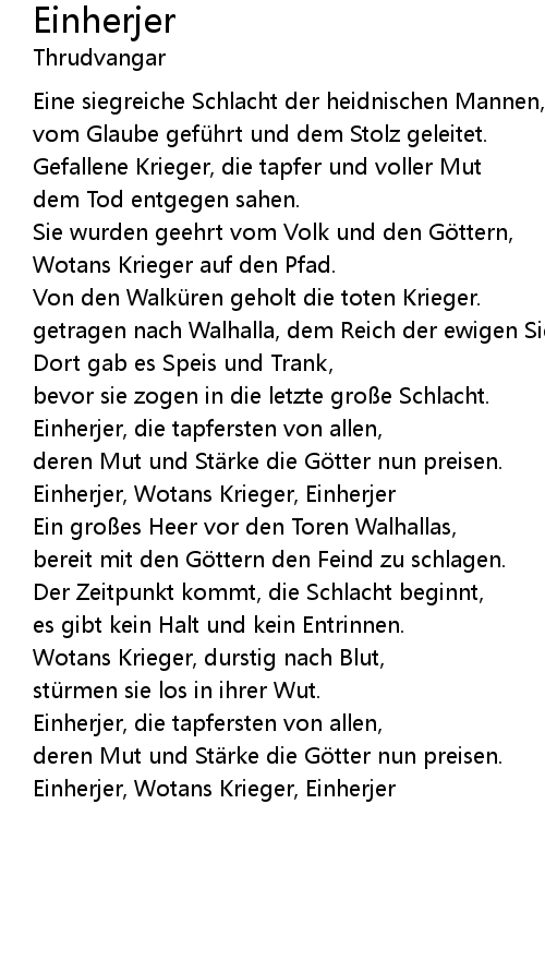 | Einherjer, die tapfersten von allen, | |