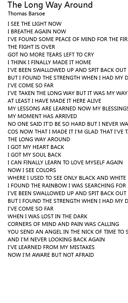 I'VE TAKEN THE LONG WAY BUT IT WAS MY WAY |