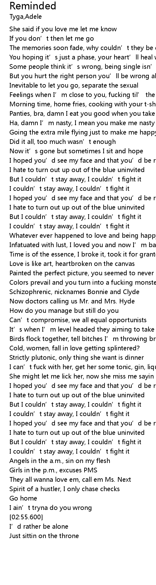 | [02:10.369] | I hoped you’d see my face and that you’d be reminded |