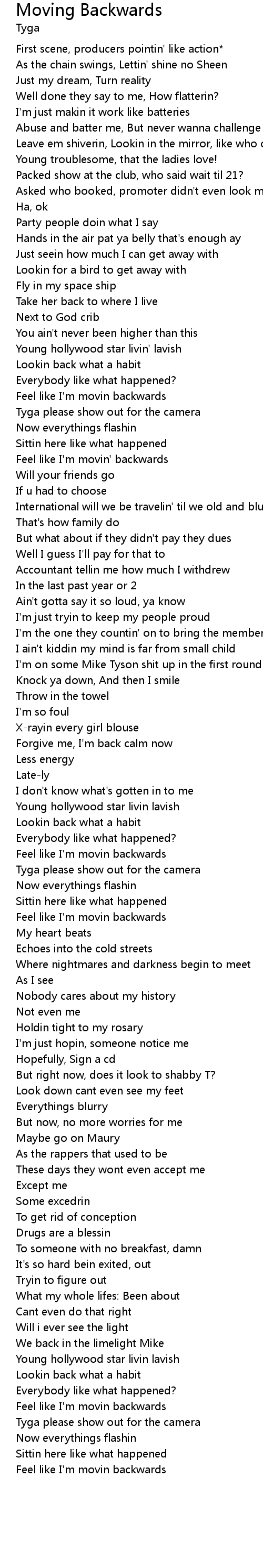 Moving Backwards Lyrics