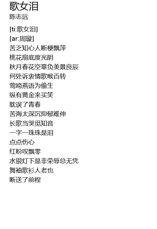 | [00:22.172] | 苦乏知心人断梗飘萍 |