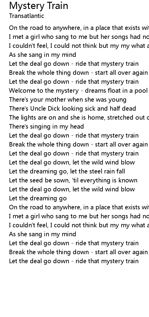 Let the deal go down - ride that mystery train |
