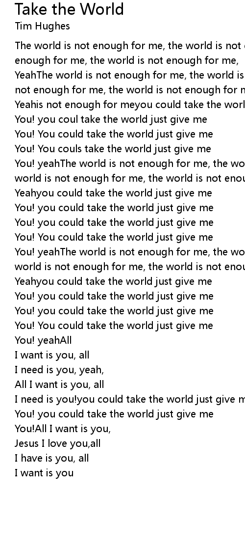 You! yeahThe world is not enough for me, the world is not enough for me, the world is not enough for me, the world is not enough for me, |