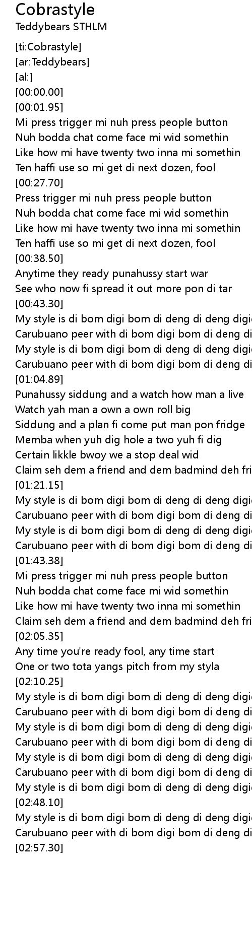 My style is di bom digi bom di deng di deng digigi uu uuu ... |