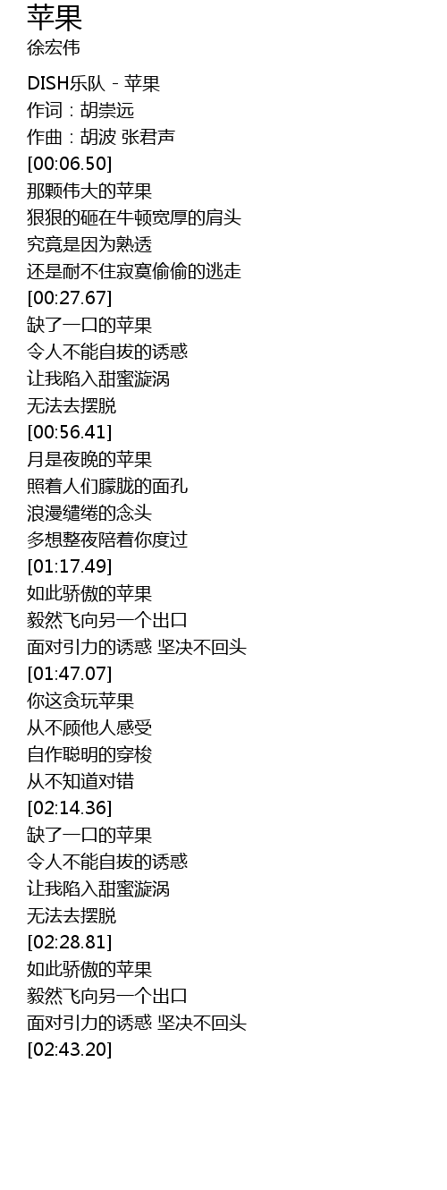 | [00:00.00] | DISH乐队 - 苹果 |