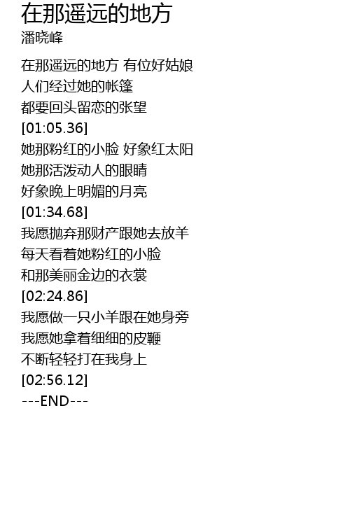 | [00:40.12] | 在那遥远的地方 有位好姑娘 |