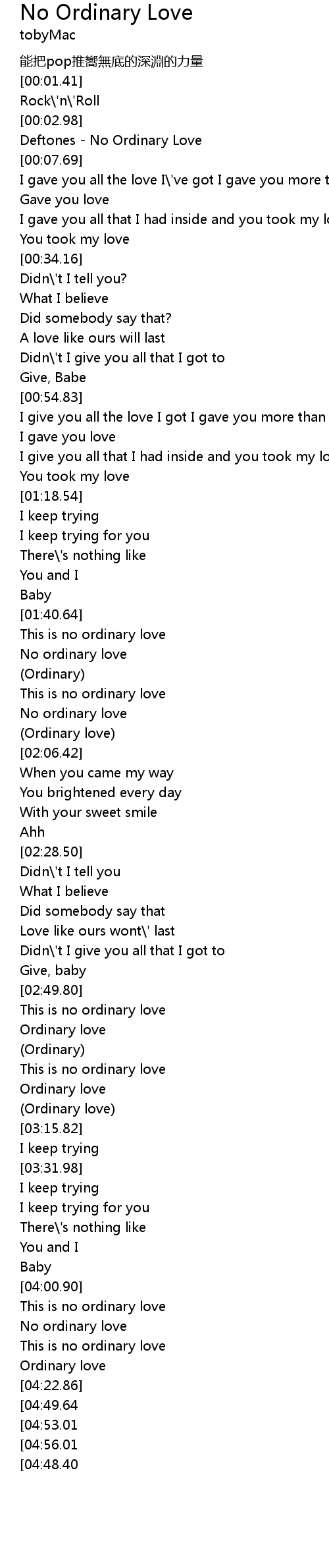 | [04:06.50] | No ordinary love |