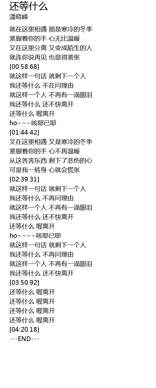 | [03:51.97] | hái děng shén me ō lí kāi |