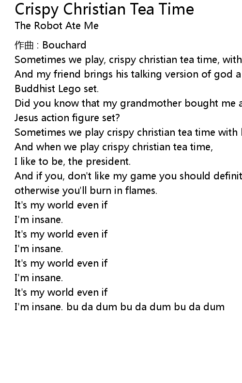 | Sometimes we play, crispy christian tea time, with barbies tea and toast. | |