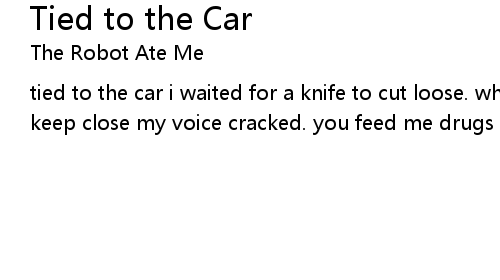 tied to the car i waited for a knife to cut loose. when i tried to tell you to keep close my voice cracked. you feed me drugs (type type type